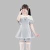 Jirai Kei Pilka Trumpa Suknelė su Balta Apykakle ir Raukiniais Peržiūrėti parinktis