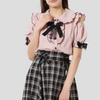 Jirai Kei Bluzka z Czarną Kokardą Różowa Krótki Rękaw