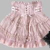 Jirai Kei rožinis sijonas su nėrinių raukiniais ir korsetu