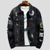 Punk Rock Kurtka Jeansowa z Naszywkami Czarna