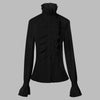 Juoda gotikinė roko palaidinė su aukšta apykakle ir raukiniais XXL
