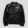 Juoda gotikinė odinė striukė su kryžiumi Peržiūrėti parinktis