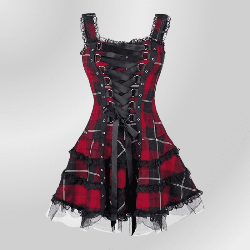 Juoda gotikinė suknelė su škotišku langu