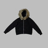 Juoda grunge stiliaus bomber striukė su kailiniu gobtuvu Peržiūrėti parinktis