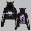 Juoda HUNTRX Demon Hunters Jirai Kei džemperis su ragais, trumpintas, XXL
