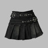 Juoda klostuotas punk sijonas su metalinėmis juostomis ir kniedėmis L