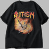 Juoda Metal Autism marškinėliai su kaukole ir ugnimi, oversize Peržiūrėti parinktis