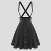 Czarna Spódnica Metalowa z Szelkami i Gorsetowym Sznurowaniem