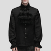 Czarna Koszula Metal z Koronkowymi Falbanami i Żabotem
