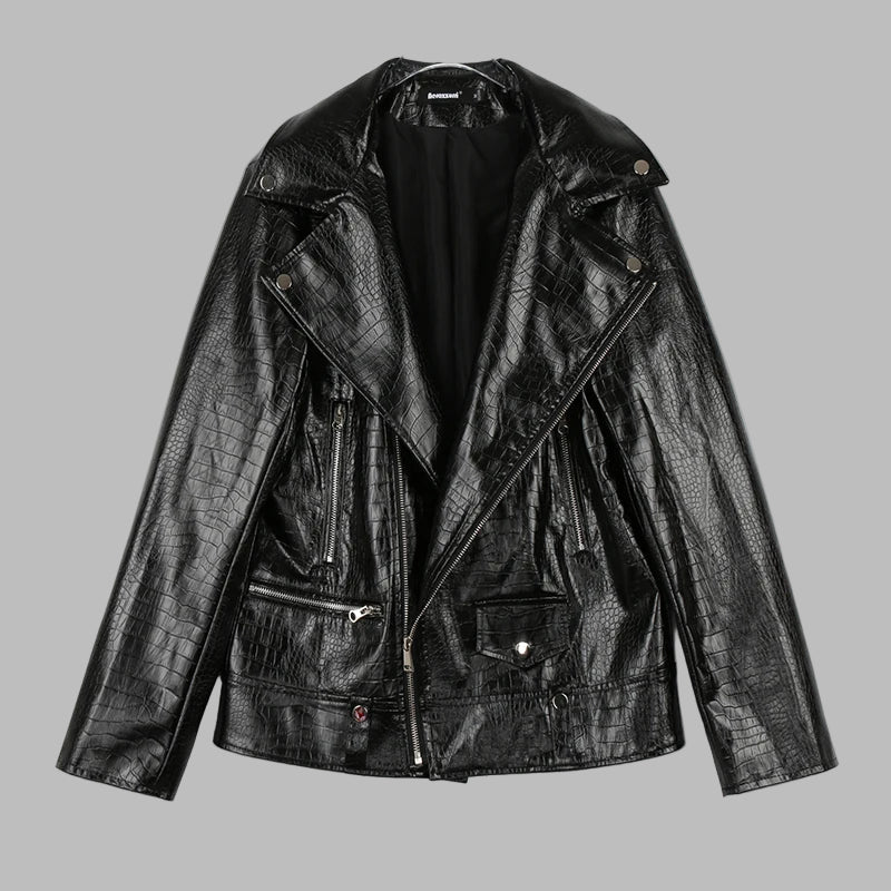 Juoda odinė gotikinė metalinė punk stiliaus striukė ramoneska