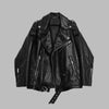 Juoda odinė gotikinė punk metalinė oversize striukė Peržiūrėti parinktis