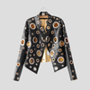 Juoda odinė striukė su metalinėmis kilpomis Steampunk