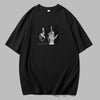 Juoda oversize roko marškinėliai su rankų gestais Peržiūrėti parinktis
