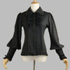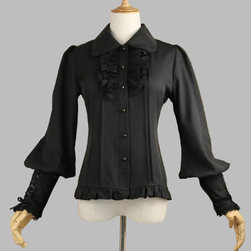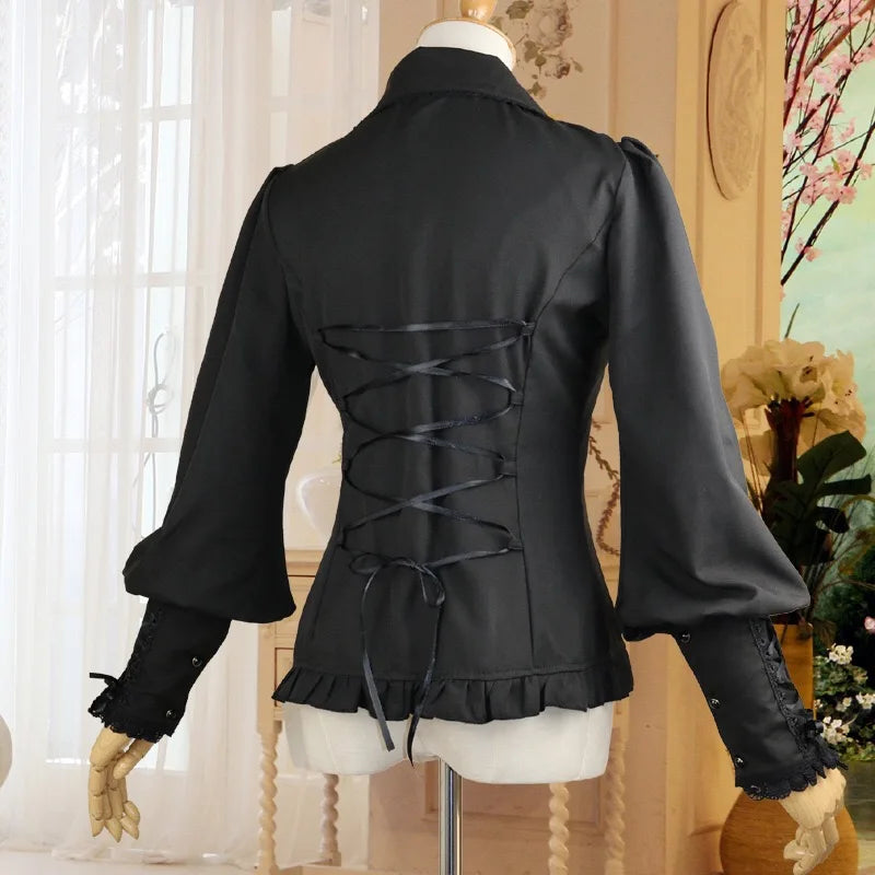 Juoda palaidinė su raukiniais ir raišteliais rankovėse, metal stilius