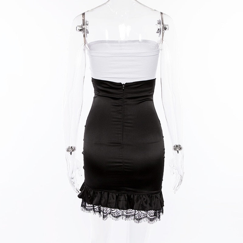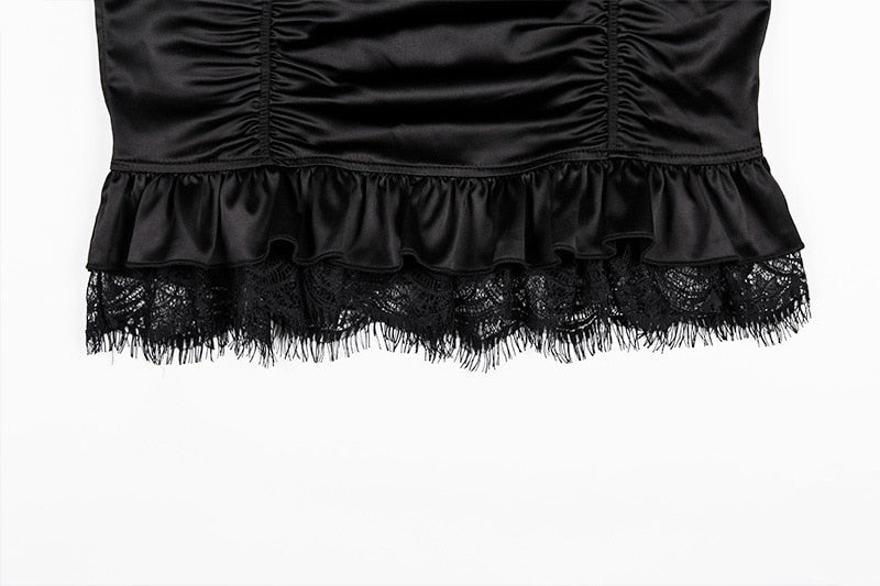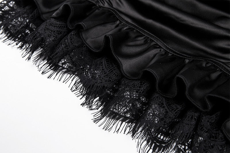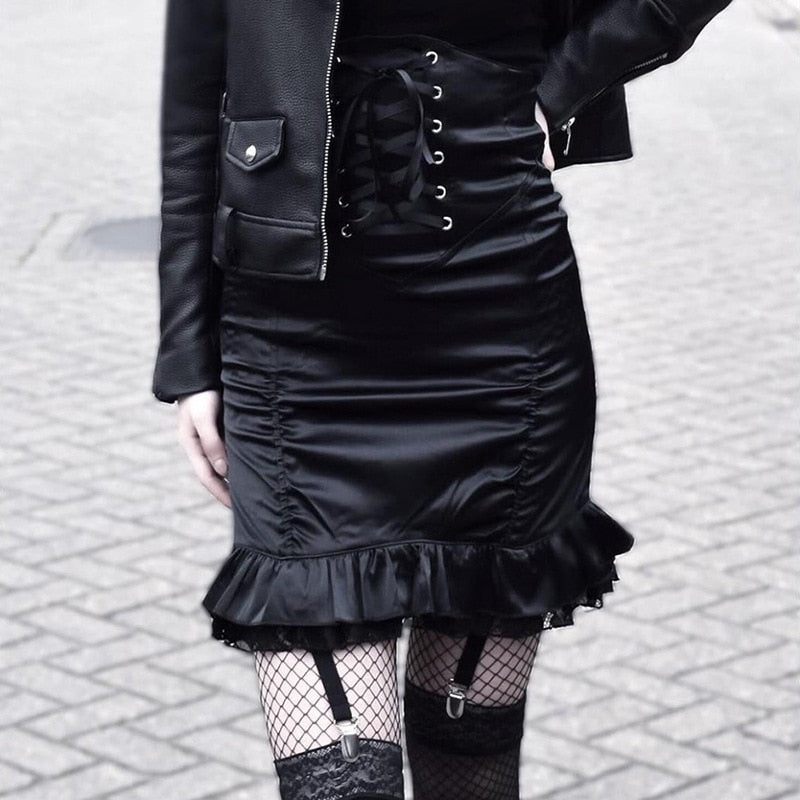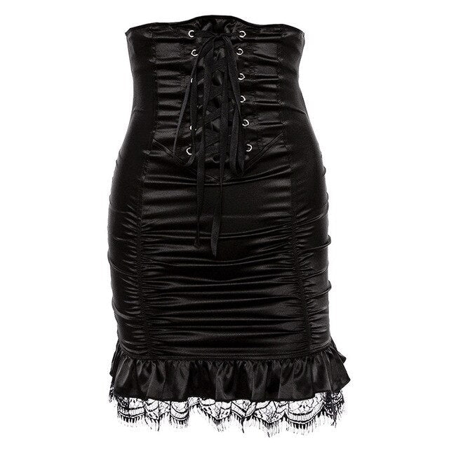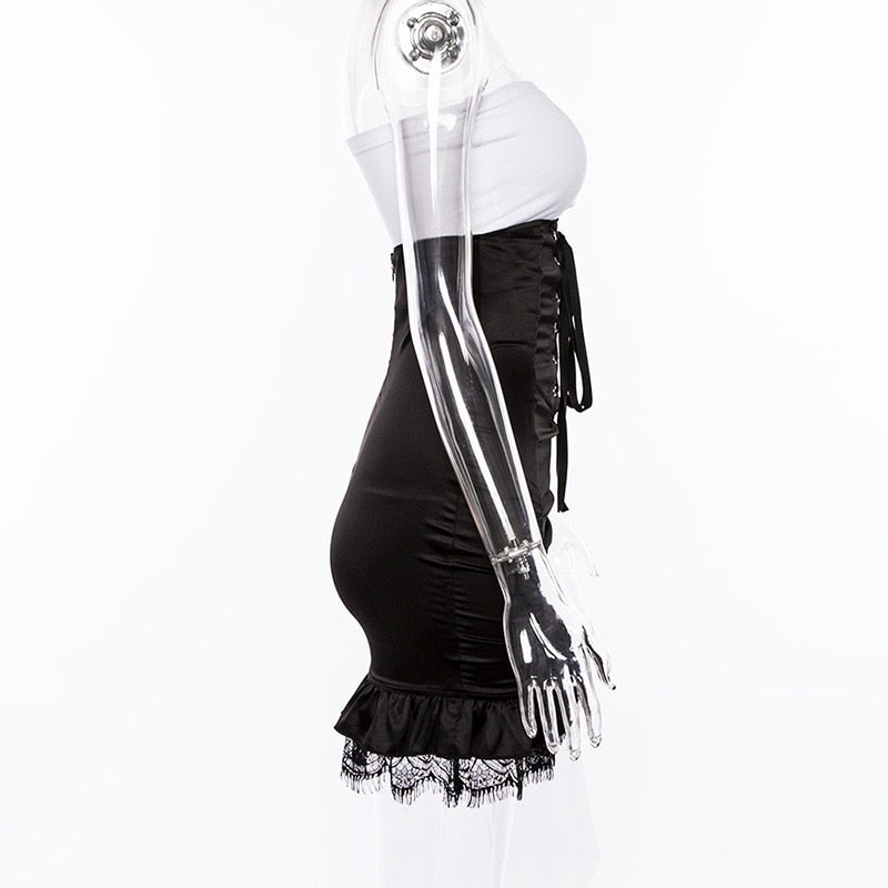 • Trumpas sijonėlis aptemptu kirpimu su nėriniais: daugiau romantikos