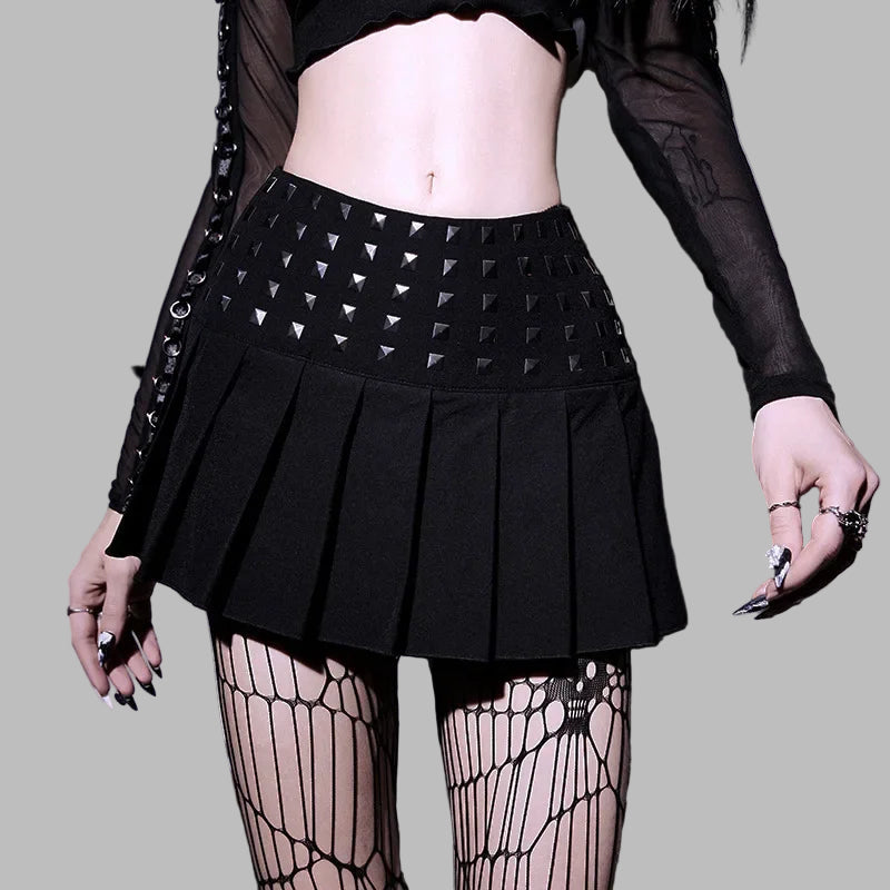 Juoda plisuota mini sijonas su kniedėmis grunge stiliaus moterims