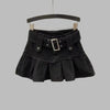 Juoda punk stiliaus sijonėlis su diržu ir metalinėmis klostėmis