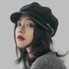 Juoda roko kepurė su odiniu snapeliu ir sagtimi