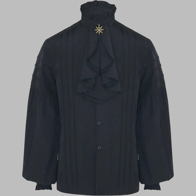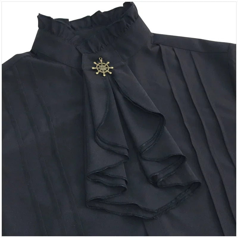 Juoda steampunk stiliaus marškiniai su aukšta apykakle ir raukiniais Peržiūrėti parinktis