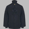 Juoda steampunk stiliaus palaidinė su aukšta apykakle ir raukiniais