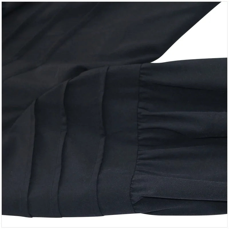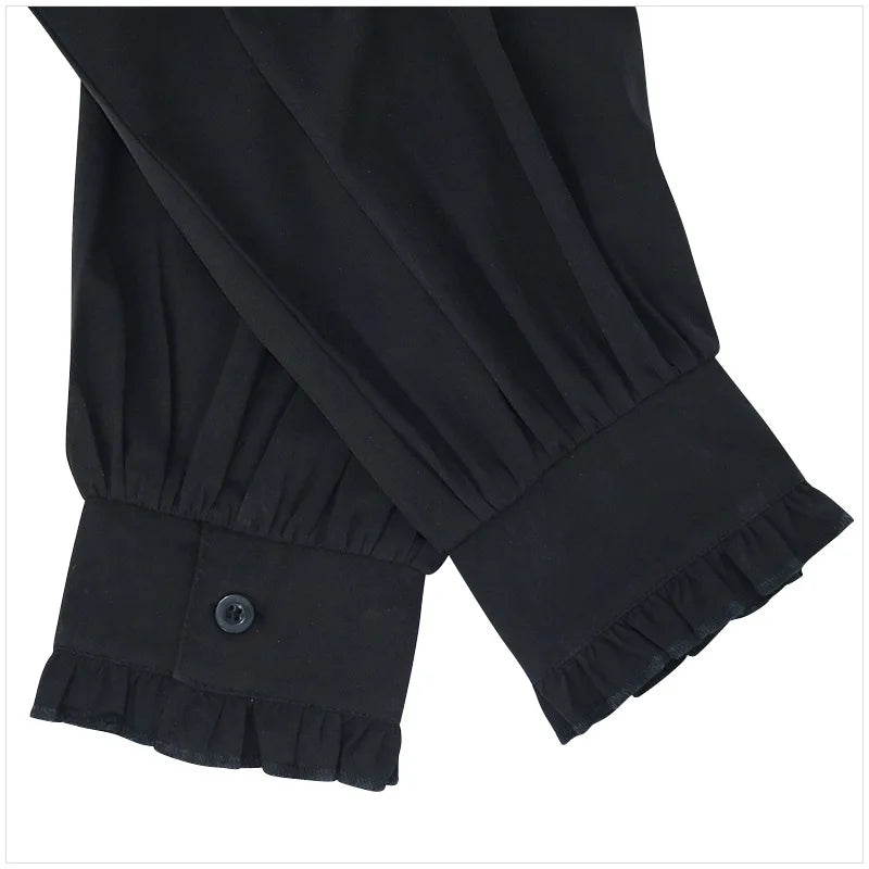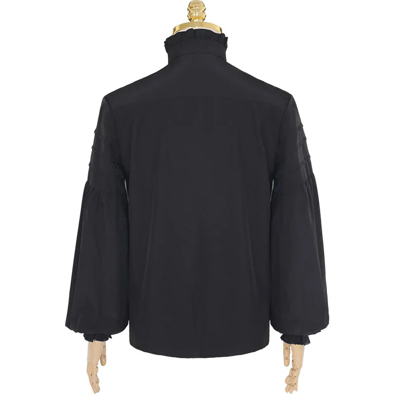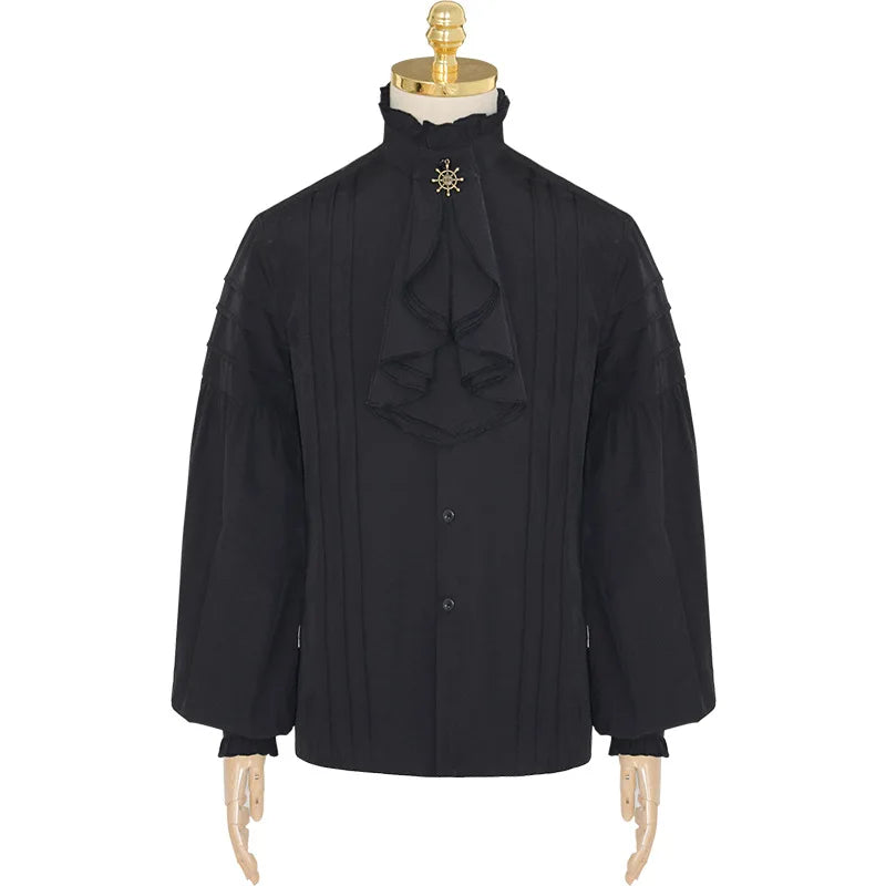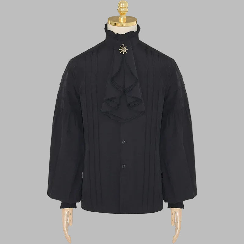 Juoda steampunk stiliaus palaidinė su jabotu ir auksine segė
