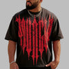 Juoda sunkiojo metalo marškinėliai su raudonu atspaudu