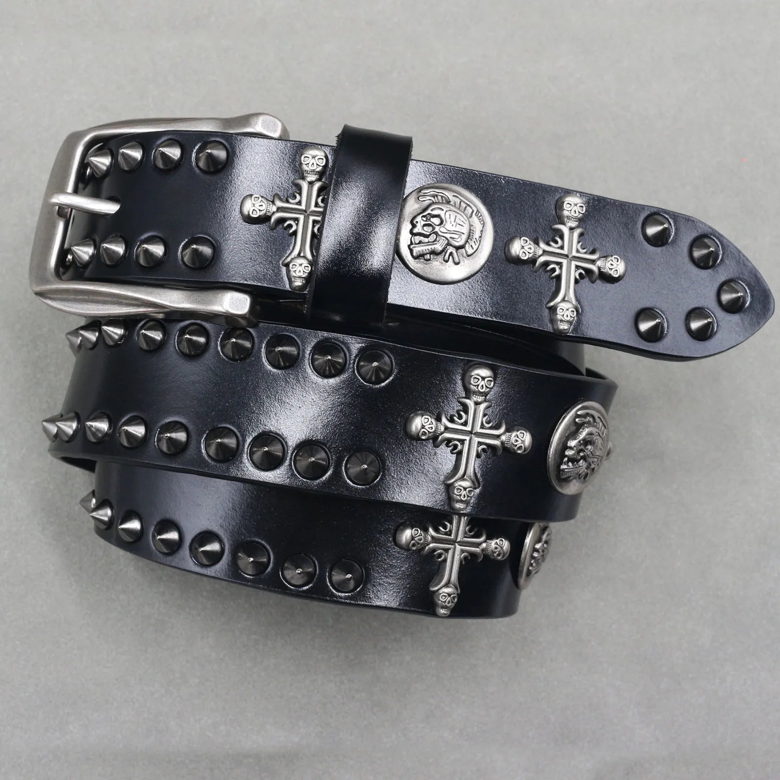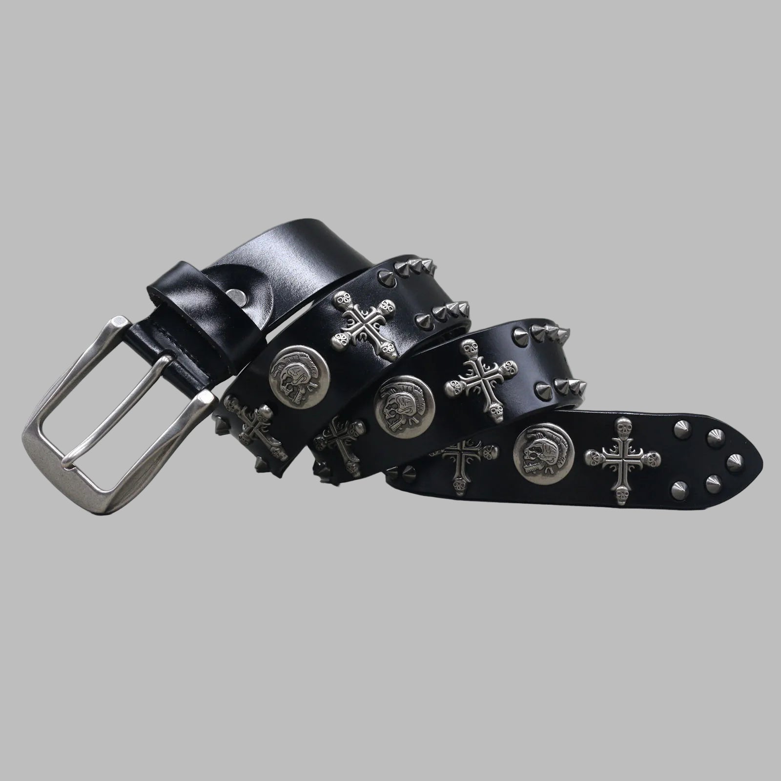 Juodas diržas su kryžiais ir kaukolėmis Metal Rock