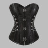 Juodas gotikinis korsetas su ornamentu ir sidabrinėmis grandinėmis, 6XL, roko metalo stiliaus