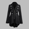 Juodas gotikinis moteriškas paltas su klostėmis, sagomis ir užtrauktuku Peržiūrėti parinktis