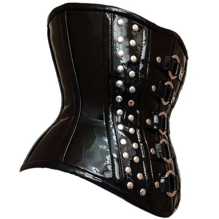 Juodas gotikinis punk korsetas su metalinėmis sagtimis ir kniedėmis 4XL