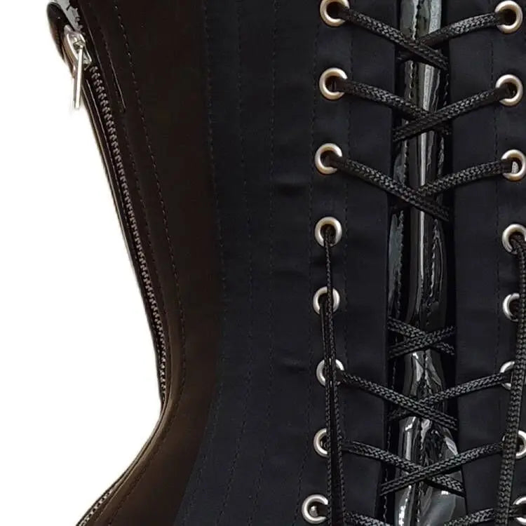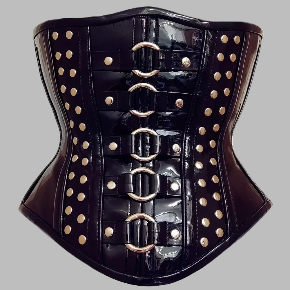Juodas gotikinis punk korsetas su metalinėmis sagtimis ir kniedėmis