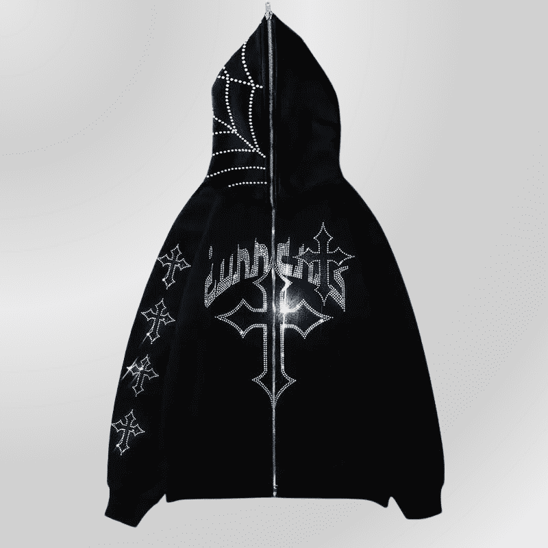 Juodas Grunge džemperis su gotikiniu kryžiumi