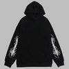 Juodas Metal stiliaus džemperis su gobtuvu ir baltais raštais ant rankovių