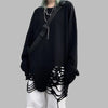 Juodas punk rock stiliaus džemperis su skylėmis, oversize grunge