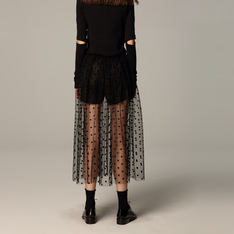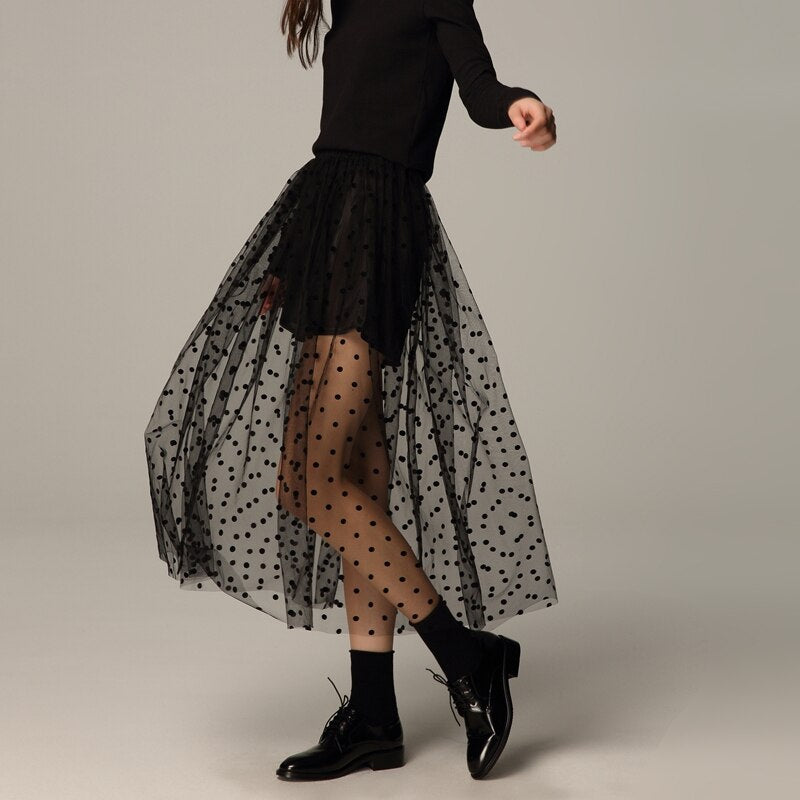 - Gotikinis išplatėjantis sijonas: medžiagos klostės prideda šiek tiek tamsaus grožio
