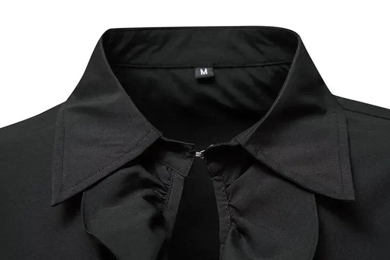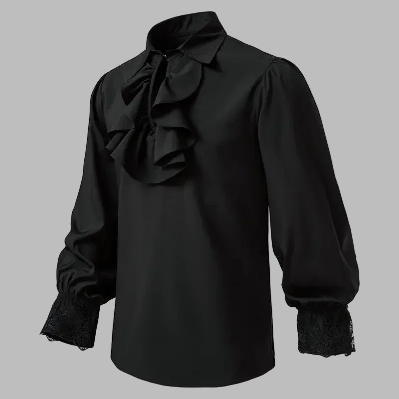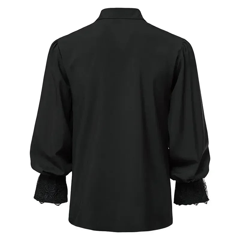 Juodi Rock marškiniai su nėriniuotomis rankogaliais ir jabotu Peržiūrėti parinktis