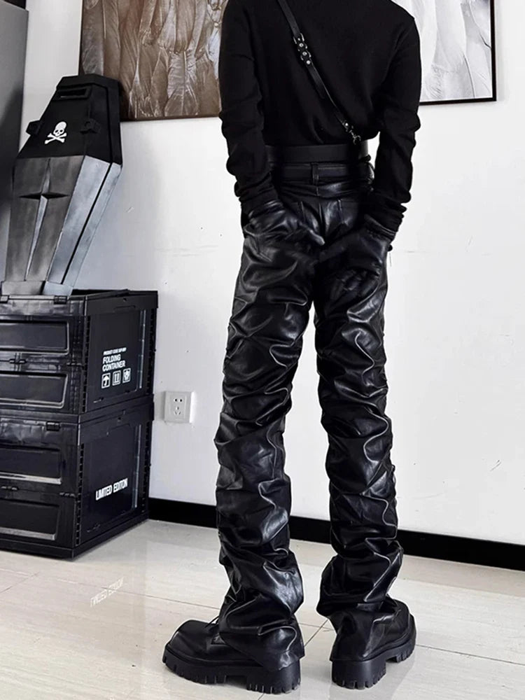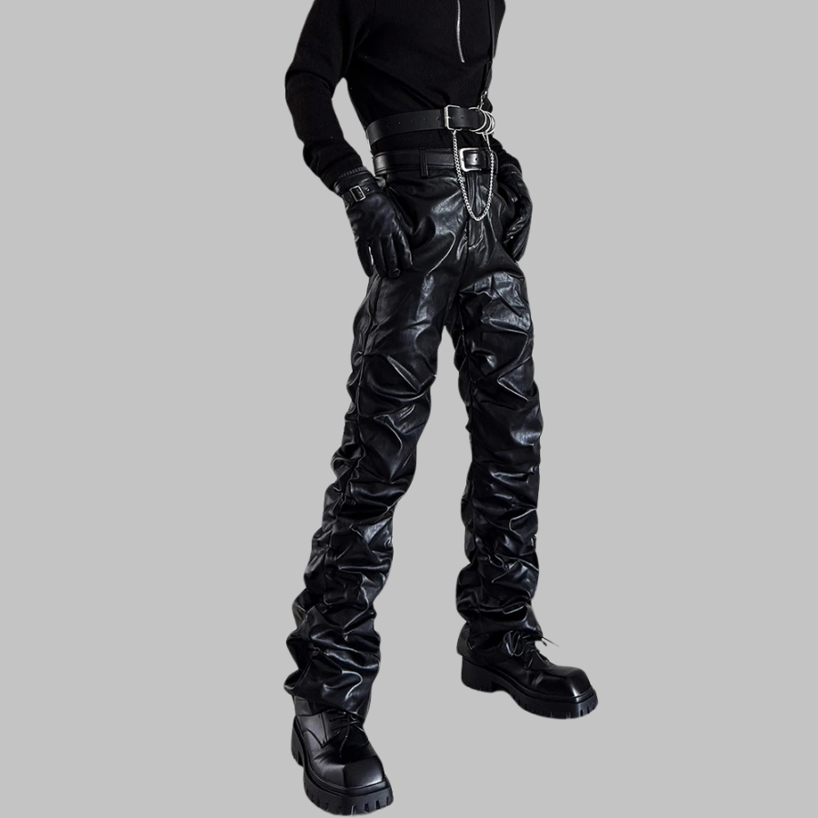 Juodos gotikinės dirbtinės odos kelnės su grandinėmis ir diržu