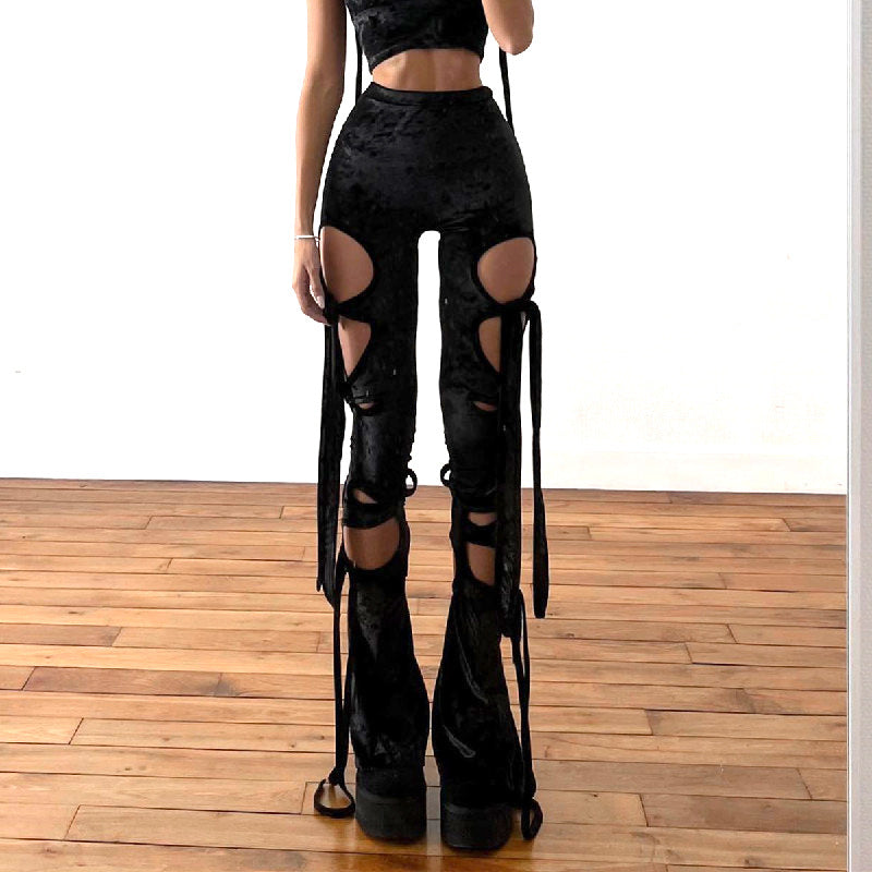• Išskirtinės Detalės: Detalės, tokios kaip "Hollow Out," vintage ir tvarstis, suteikia šiems gotikinėms kelnėms meninį matmenį. Šie elementai kuria vizualiai įspūdingą estetiką, tuo pačiu pabrėždami tamsų kelnių charakterį.