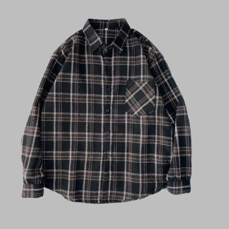 Juodai languoti grunge punk marškiniai ilgomis rankovėmis