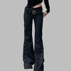 Juodos žemo liemens džinsai su kilpelėmis – moteriškas grunge stilius