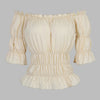 Kreminė steampunk stiliaus palaidinė su ispanišku iškirpimu ir pūstomis rankovėmis, dydis 6XL