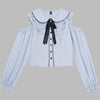 Mėlyna Lolita palaidinė su atvirais pečiais ir kaspinu Kawaii Lolita Jirai Kei