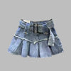 Mėlynas džinsinis punk sijonas su diržu ir klostėmis Peržiūrėti parinktis