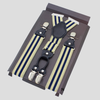 - Spalva: mėlynos ir smėlio spalvos juostelės su juodomis odinėmis detalėmis