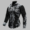 Metaliniai marškiniai su ornamentais ir raštais, ilgos rankovės, juoda