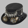 Metalo steampunk skrybėlė su kaukolėmis ir akiniais, juoda