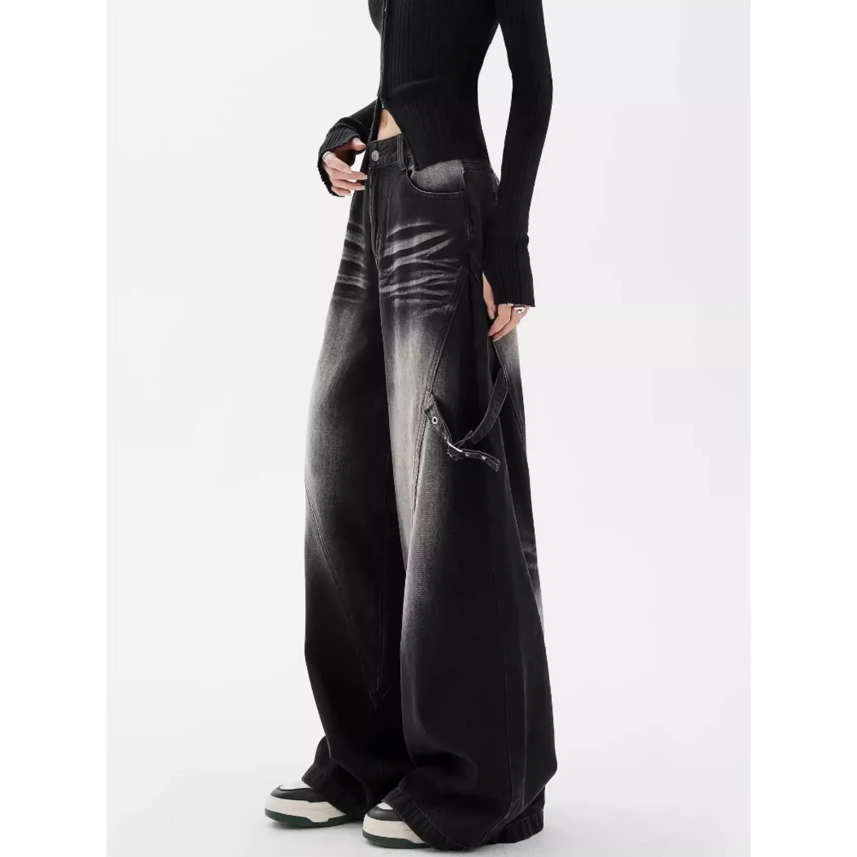 - Plataus kirpimo džinsai (wide leg)