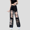 Spodnie Grunge Punk Szerokie Jeansowe Postrzępione Damskie