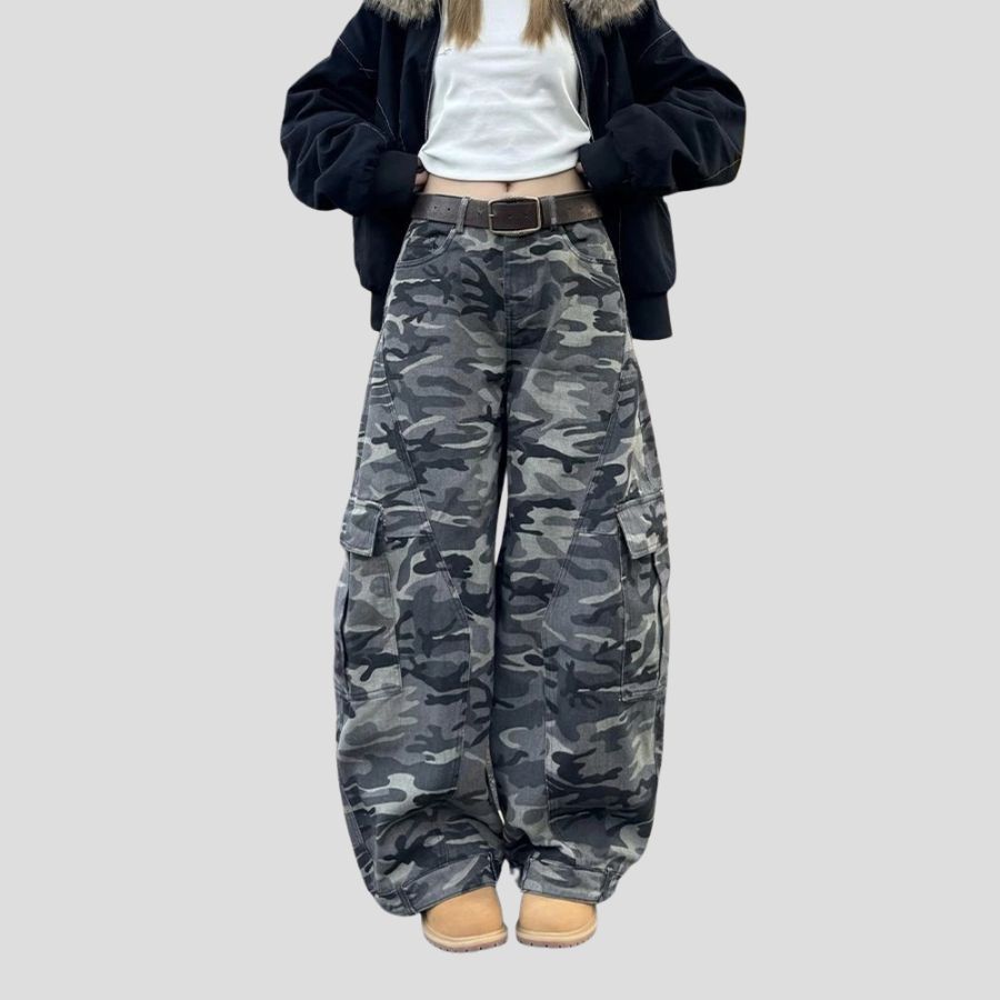 Moteriškos oversize karinės cargo kelnės su kišenėmis