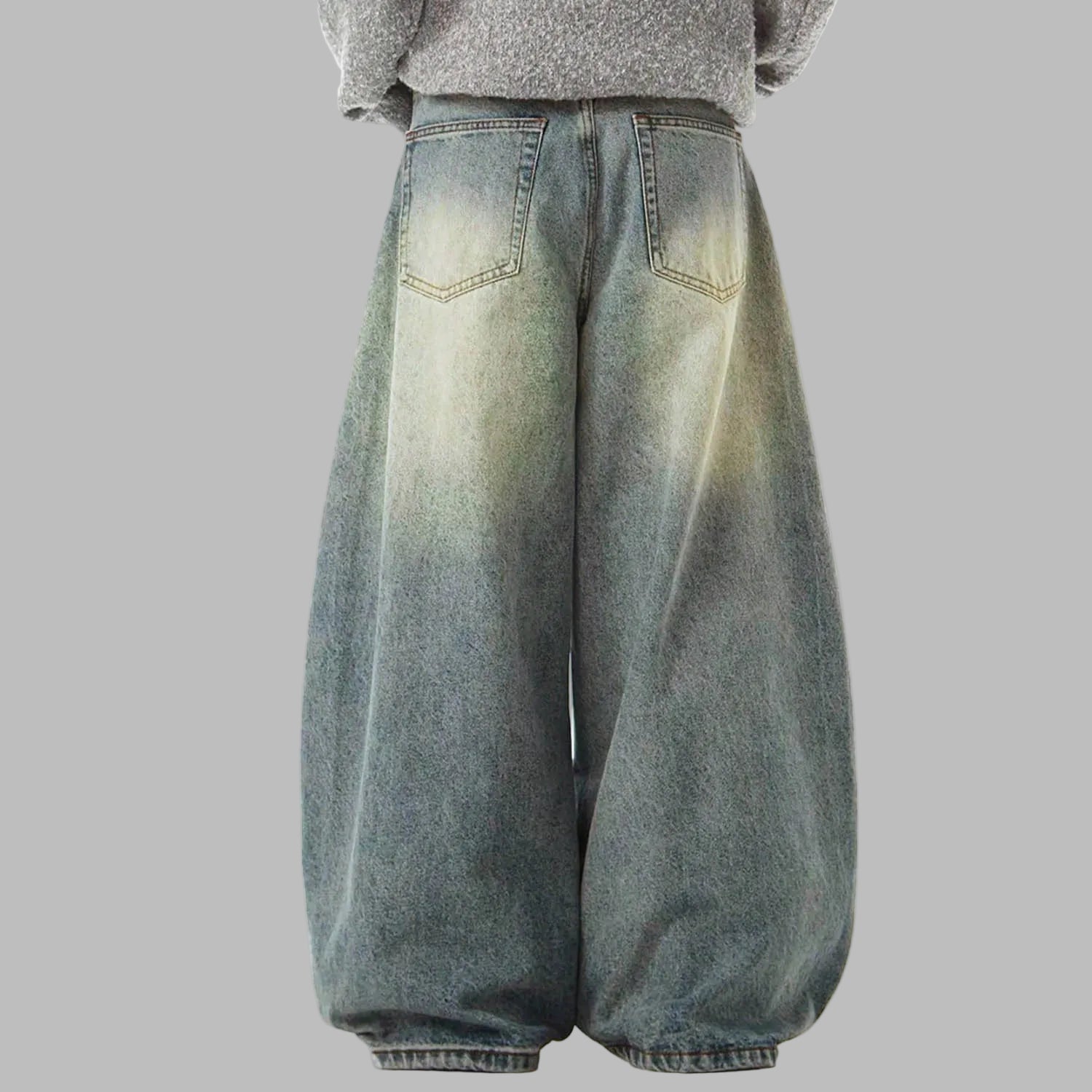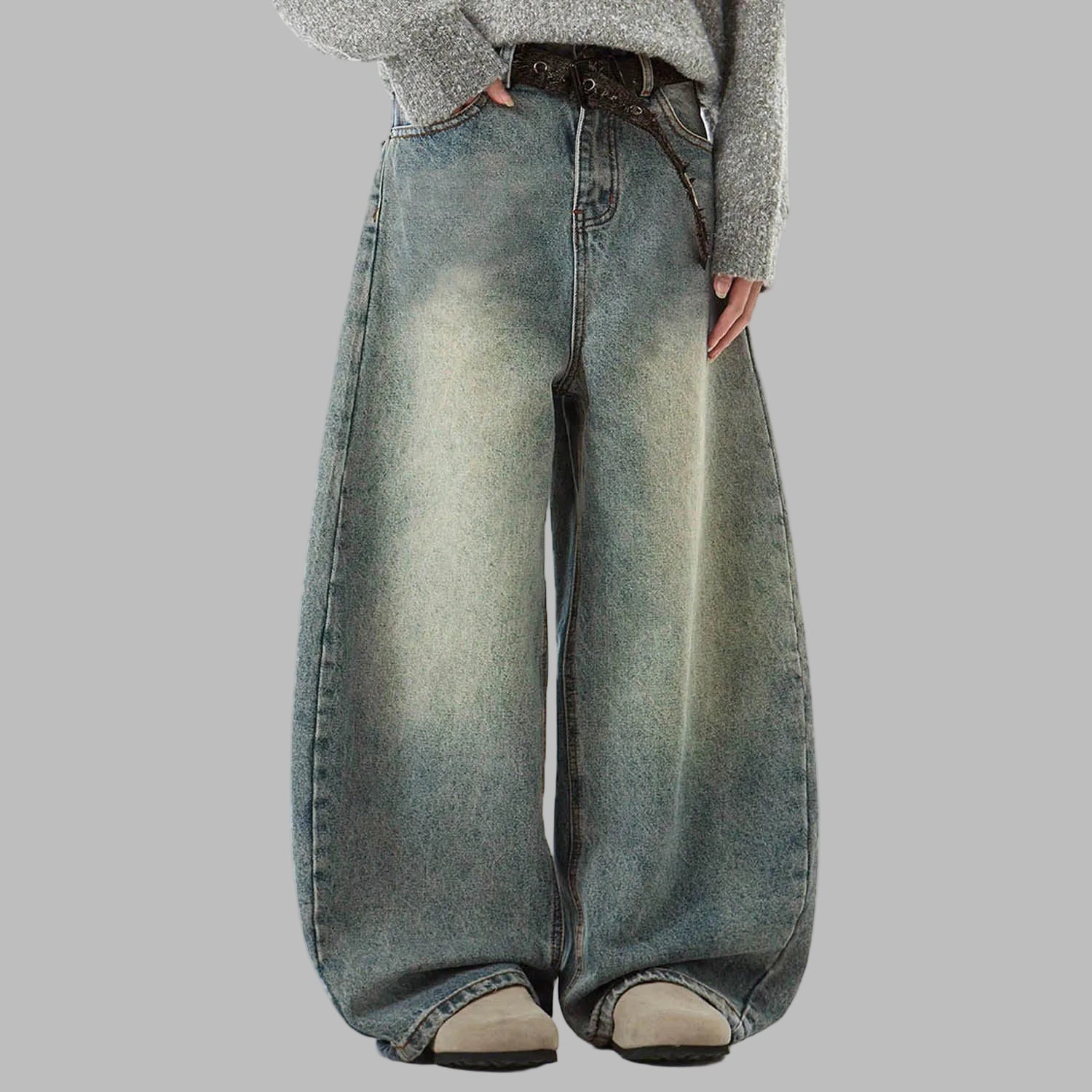 Moteriškos pilkos grunge stiliaus oversize plačios džinsinės kelnės